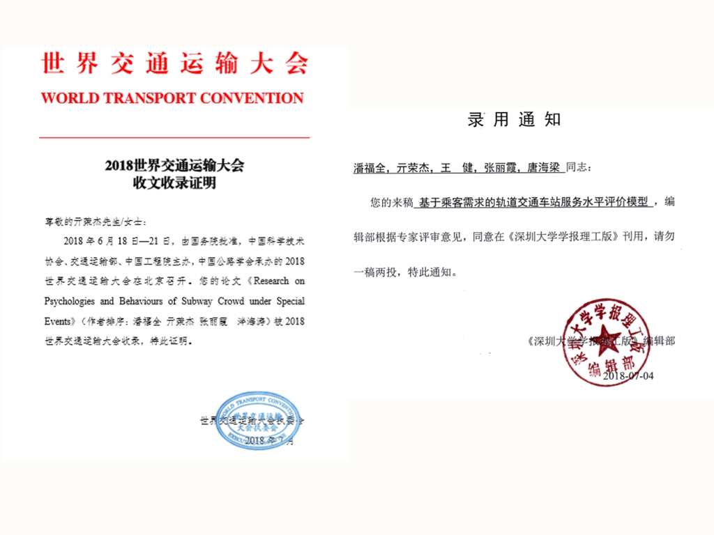 [3] 潘福全, 亓荣杰, 唐海梁, 张丽霞等. 基于乘客需求的轨道交通车站服务水平评价模型. 深圳大学学报.(录用待刊)