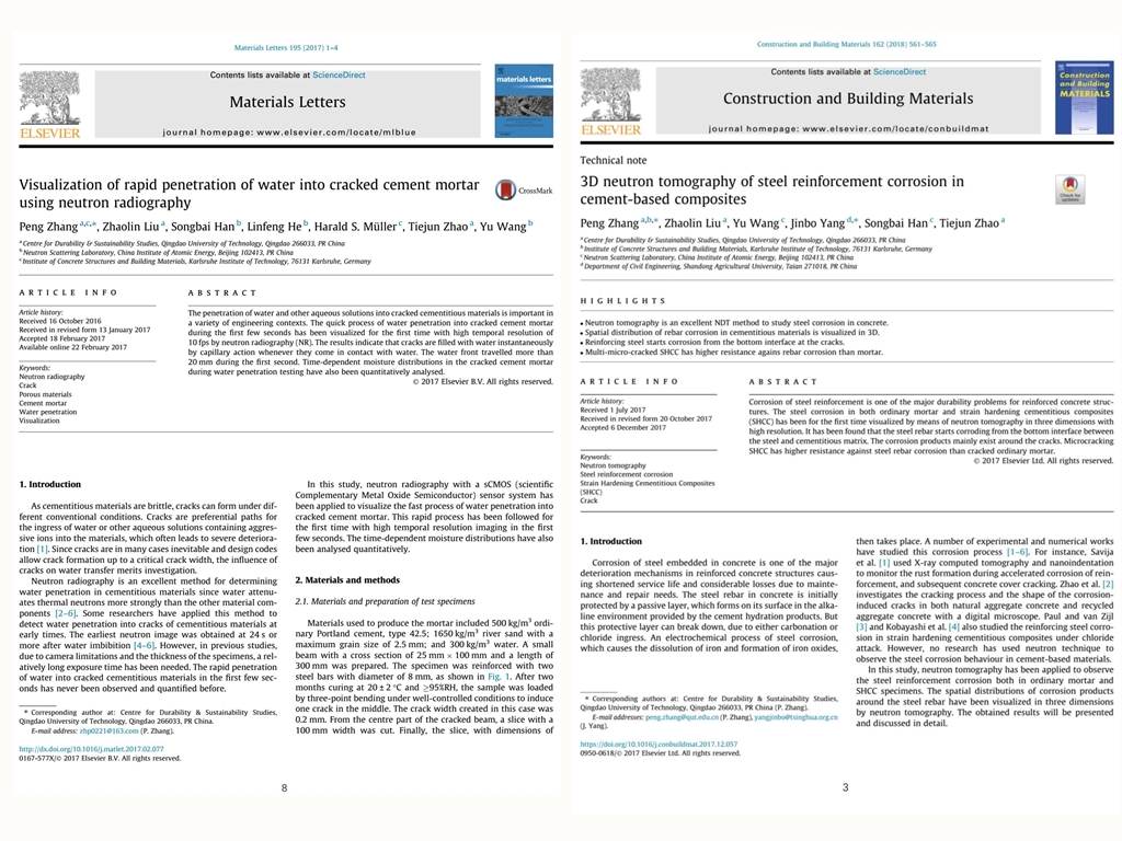[2] Zhang P, Liu Z, Han S, et al. Visualization of rapid penetration of water into cracked cement mortar using neutron radiography[J]. Materials Letters, 2017, 195: 1-4.